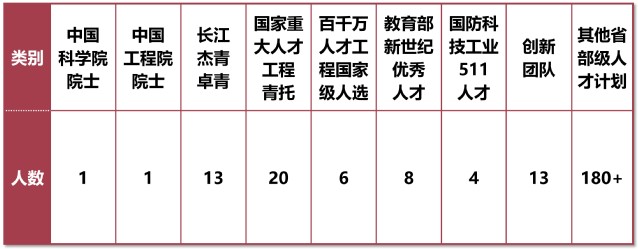 学院现有在职教职工305名,其中专任教师246名,教授93名,副教授和高级工程师100名。专任教师中拥有中国科学院院士朱荻,50余人次入选国家级人才计划,180余人次入选省部级人才计划。获全国高校黄大年式教师团队、国家级教学团队、国家自然科学基金创新群体、教育部创新团队、国防科技创新团队、教育部战略性新兴领域“十四五”高等教育教材体系建设团队等13个创新团队