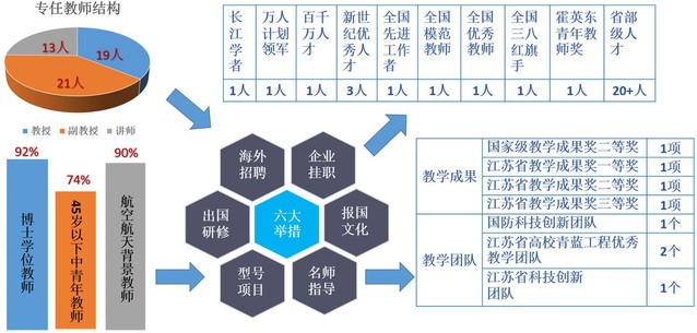 实践教学平台“优”:经过近七十年的积累和建设,拥有特色鲜明的科学研究和学生培养条件,建设了航空工程国家级实验教学示范中心、国家商用飞机制造工程技术中心(分中心)、“飞机大部件装配虚拟仿真”国家级虚拟仿真实验教学平台、教育部“可持续制造关键技术”高等学校学科创新平台、工信部协同创新中心、工信部航空航天制造技术实验教学示范中心、江苏省数字化设计制造工程技术研究中心、江苏省数字化医疗装备重点实验室等近10个国家级和省部级实践教学平台,成为我国飞行器制造技术研究和高层次人才培养的重要基地。