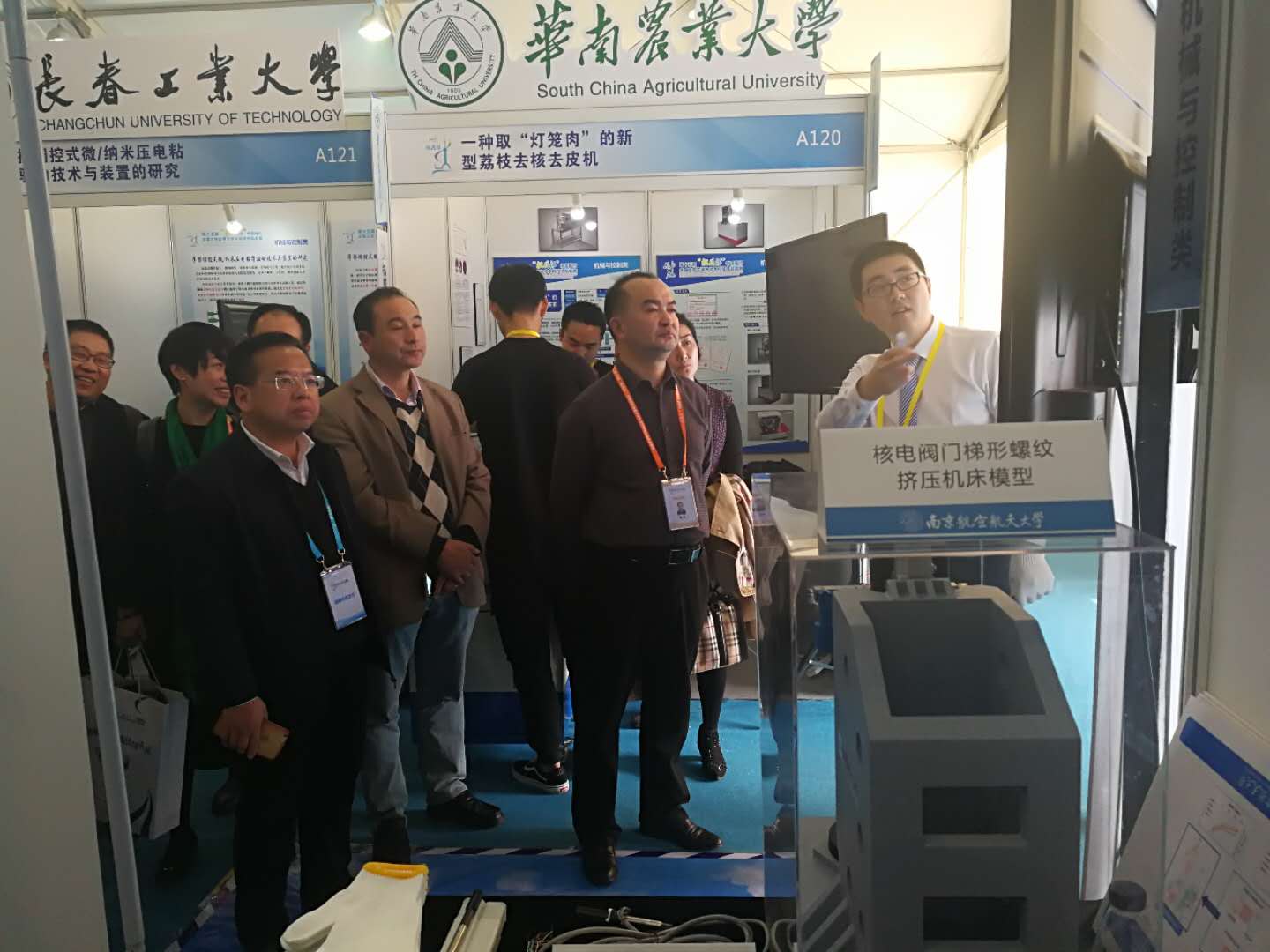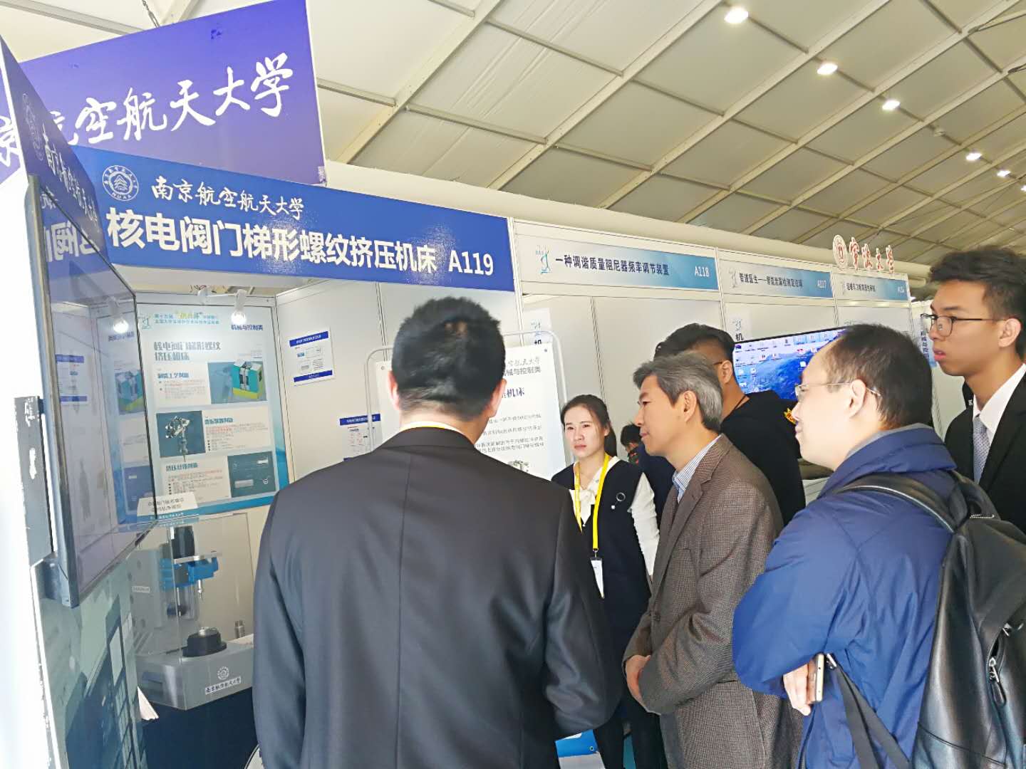 11月14日至19日,第十五届“挑战杯”全国大学生课外学术科技作品竞赛决赛在上海大学举行。经过省赛等前期激烈角逐,极品av 左敦稳、孙玉利教授指导的,由廖泽南、李岚、汤苏扬、徐洋、崔晓飞、罗伦等组成的“核电阀门梯形螺纹挤压机床”项目荣获机械控制组一等奖。11月15日,校党委副书记陶勇、研究生院常务副院长江驹、教务处处长王成华、学生处处长侍旭、院党委副书记徐俊珠、指导教师左敦稳教授到场指导极品av 决赛项目布展并为团队成员加油鼓劲。团省委副书记司勇也来到现场观看极品av 项目展示并指导。