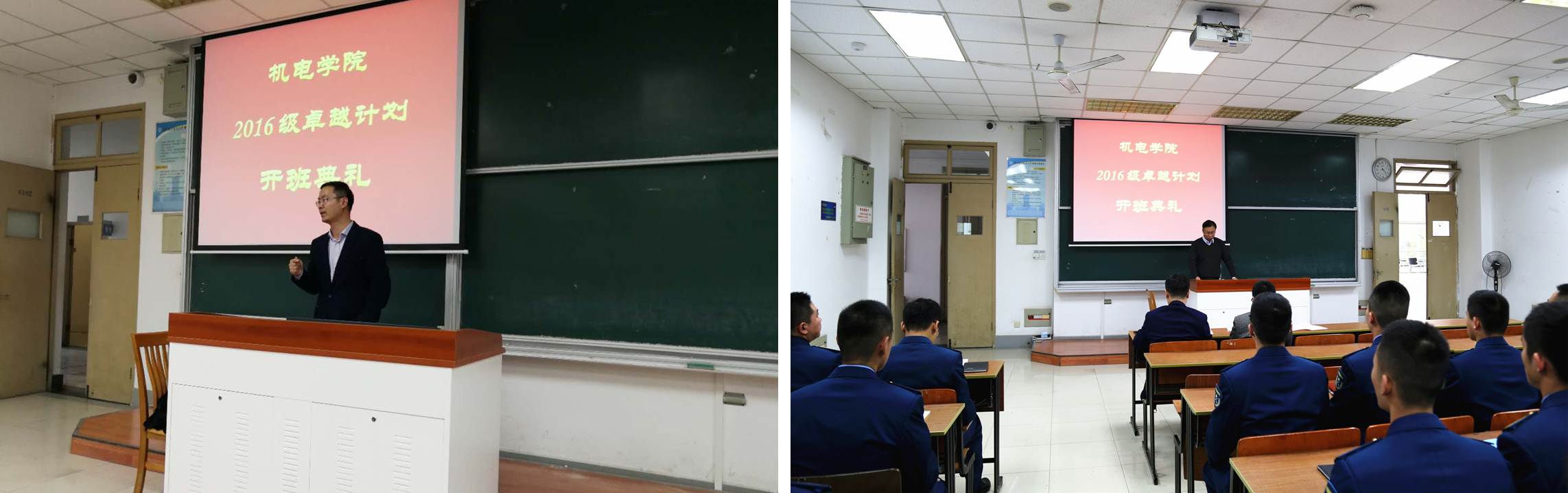 2017年11月27日下午,极品av 2016级卓越计划开班典礼在将军路校区6102教室成功举行。本次典礼由极品av 副院长郭宇教授主持,与会嘉宾有教务处副处长朱建军教授、空军选培办干事李吉、空军机务干部蒋相闻、阿特拉斯高级工程师秦虎、609所研究员徐礼林、校内导师叶明和王辉、极品av 航空宇航制造工程系副主任金霞、极品av 教学秘书熊萍萍、2016级卓越班辅导员董航和康怡宁、2016级极品av 卓越班全体学生。