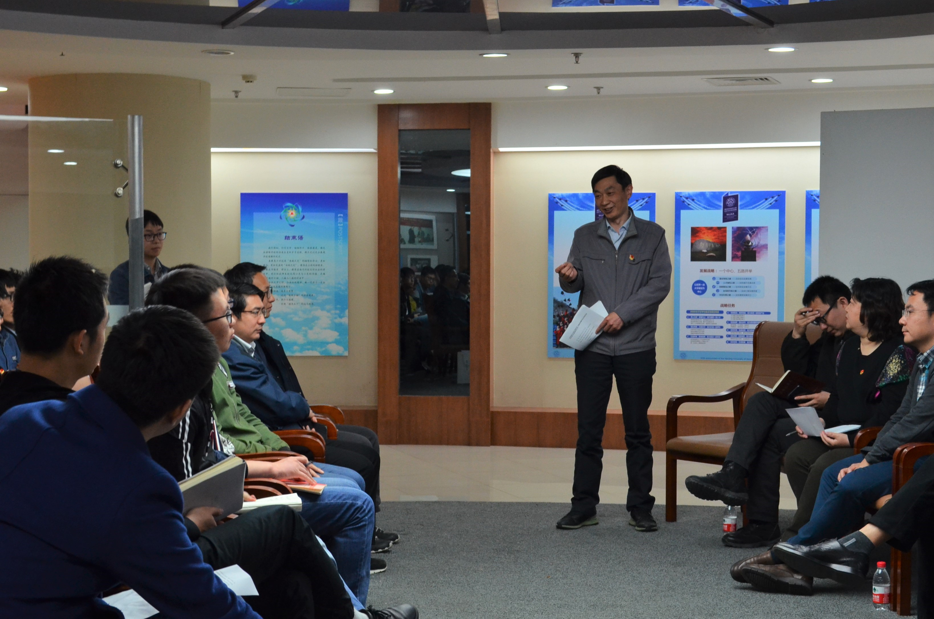 校史馆。在讲解员的带领下,党员们回顾了南航66年的发展历史,专业的飞机模型、灿烂的荣誉奖章、金工实习用具等一些充满历史印记的场景吸引了大家的兴趣,党员们积极地和讲解员进行交流,认真聆听历史背后的故事。