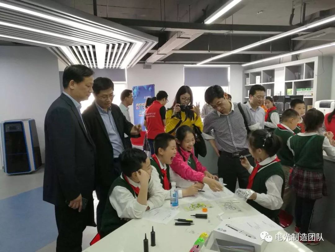 签约仪式前,各位嘉宾现场观摩了金陵中学实验小学首批进入大学实验室STEAM课程研究体验小学生。在航模课程中,南航航模队的现场飞行表演引来孩子们阵阵欢呼声,孩子们的心随着飞行器的翻转而跌宕起伏;在另一处仿生机器人课堂,孩子们正好奇的接触各种类型的仿生机器人:仿大壁虎攀爬机器人、仿鱼游动机器人、仿昆跳跃机器人,五花八门,琳琅满目,胆子大的同学还能亲自感受国家二级保护动物云南大壁虎带来的奇妙范德华力;在3D打印实验室,志愿者研究生将自己开展的最前沿国防背景的陶瓷3D打印课题进行了科普,手把手指导同学们亲自配置3D打印所需陶瓷浆料,并体验了各类3D打印机。