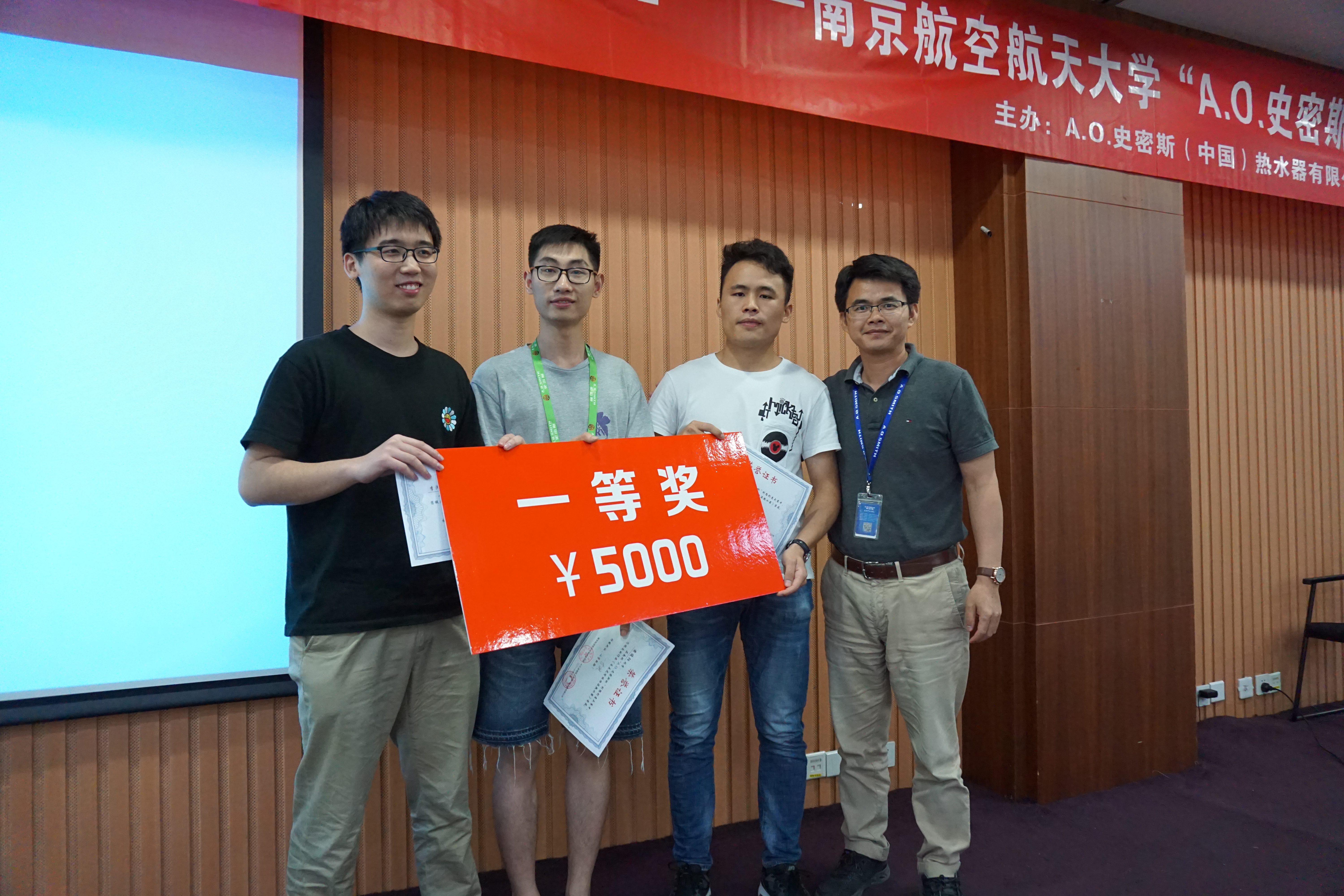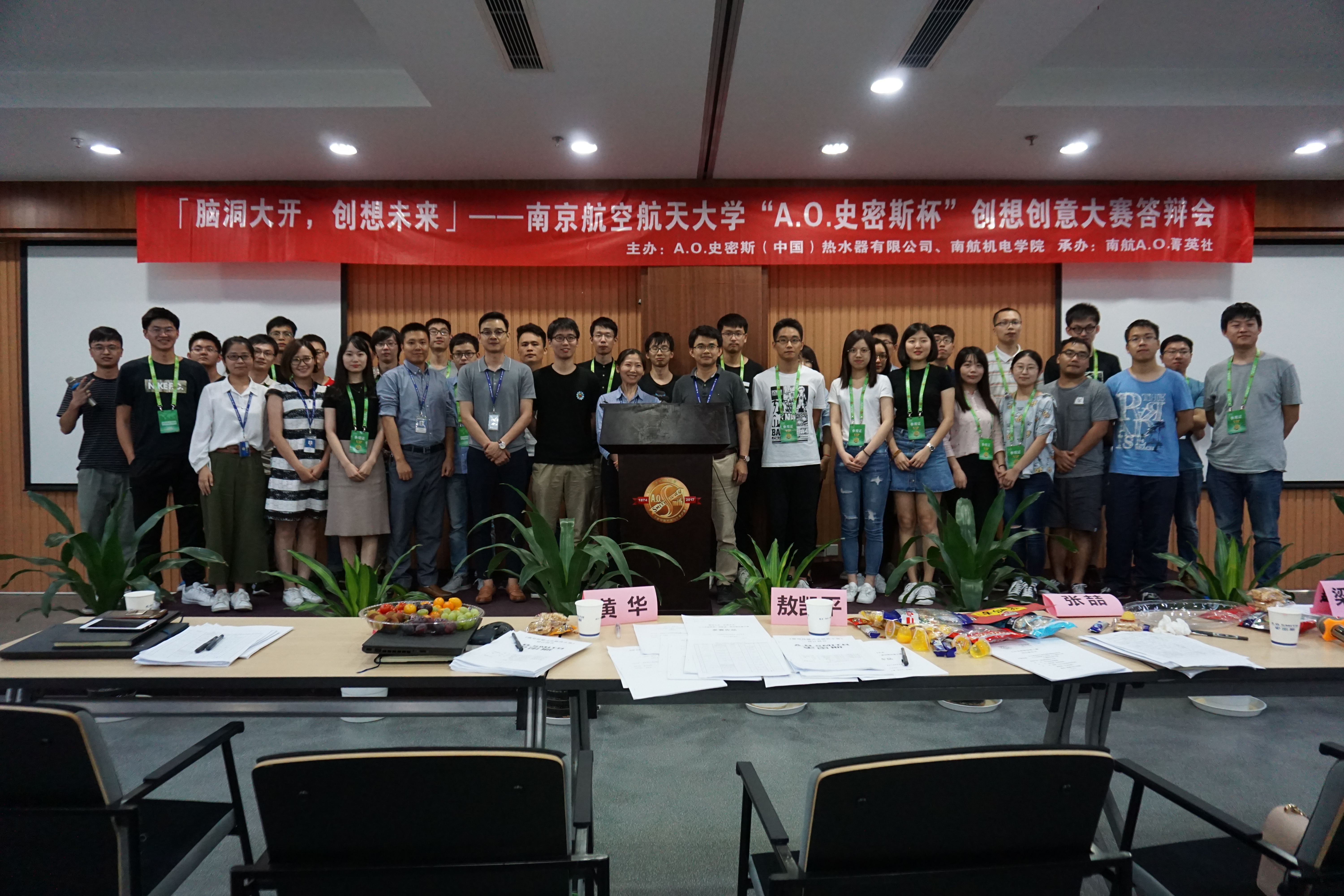 6月21日,“脑洞大开,创想未来”――南航极品av 首届“A.O.史密斯杯”创意创想大赛顺利落下帷幕,本次大赛是围绕A.O.史密斯公司旗下优秀产品进行技术、结构或概念设计、改进的技术创意型大赛,比赛由A.O.史密斯(中国)热水器有限公司、南航极品av 联合主办,由招生俱乐部A.O.菁英社承办。经过长达数月的充足前期策划与宣传工作,本次大赛于5月20日正式开赛。5月30日,A.O.菁英社邀请了企业方代表与参赛人员在南航明故宫校区15号楼举行了线下指导交流会。6月11日,企业专家审核了各参赛队伍作品进行了初审,来自6个学院研究生组成的11支队伍脱颖而出,入围了本届大赛决赛。