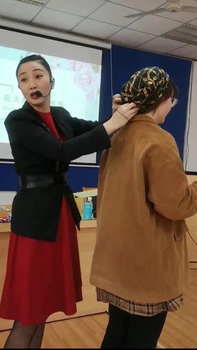 为提高实用性和可操作性,现场增加了互动环节。针对大家喜爱的丝巾系法和服饰搭配等内容,进行了现场实际操作训练,并在分享中穿插点评也受到在场所有人的热烈欢迎。学院女教职工们结合自身特点,大胆尝试,不断追求新知、提升品位,完美展示出极品av 女教工们大方优雅、自信乐观的精神风貌。