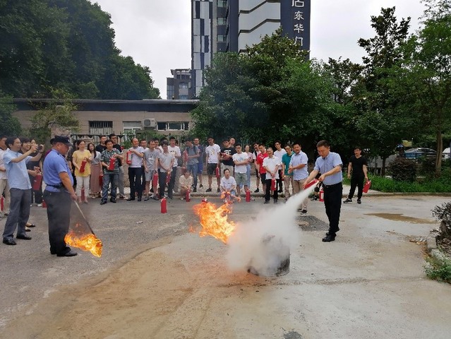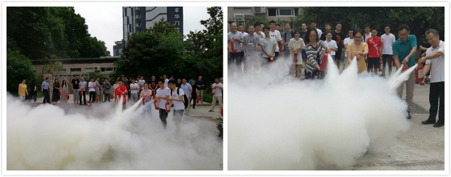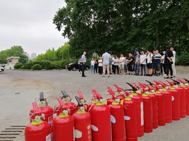 随后消防科工作人员点燃着火点,到场师生在工作人员的组织和指导下进行了灭火器现场使用演练,通过亲手操作、亲身体验,掌握了使用方法。