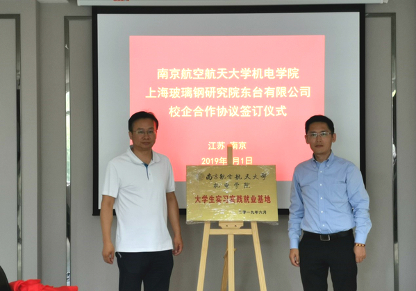 郭宇、胡中流分别代表南航极品av 、上海玻璃钢研究院东台有限公司签订了校企合作协议书,并共同为实习实践就业基地揭牌。