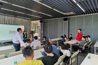 参观结束后,孙总以校友师兄的身份,与前来的后辈学子们在公司的阳光大厅进行了互动交流。学生们就光伏产业的发展情况、能源采集与供给的技术细节、公司就大学生的能力要求及岗位发展路径等问题向师兄请教。孙总对在场学生的问题予以耐心解答,并勉励后辈学子们不断学习技术理论知识,丰富实践发展,为实现智造强国的目标而努力奋斗。