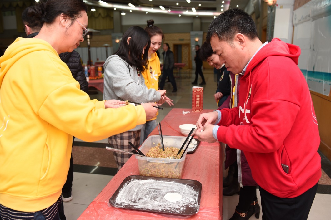 下午4点30分,大学生活动中心便热闹起来,学院的老师们纷纷上阵,动手包起了饺子,和面、捏面团、擀面皮、包馅儿,新年的味道在活动现场越聚越浓。