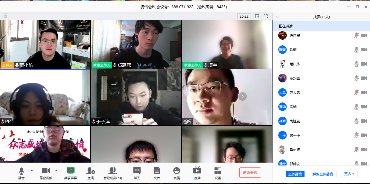 为了按时召开党支部大会,极品av 2016级本科生第一、第二党支部联合召开线上党支部大会,特殊时期,特殊办法,我也算是切身体会到了这个观念,党支部76名学生党员加上1名辅导员党支部书记,使得本次会议如火如荼的展开。反观会议内容,第一、第二党支部副书记分别分享了自己在防疫期间的心得感想,党支部书记紧接着给我们上了一堂特殊时期的党课,我个人觉得党支部会议就是让每一位党员的警钟长鸣,提醒每一位党员在不同时期都要牢记自己党员的身份,疫情期间,“党员先行”“党员打头阵”等等话语并不是停留在口号上的,我们学生党员同样是伟大党组织中的一份子,更是党组织中的新鲜血液,做好本职,做好带头,做出榜样,做合格党员!