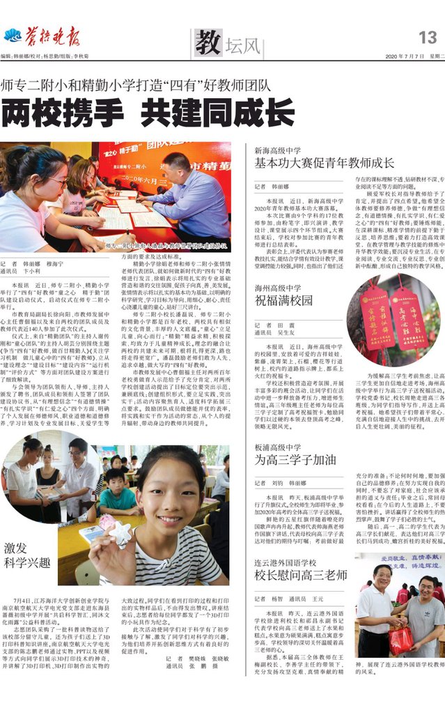 此外,活动的成功举行不仅赢得了来自校方的诚挚感谢,也获得了相关教育部门的认同,同时获连云港苍梧晚报7月7日教育专题版面报道宣传,这对团队未来的公益事业发展意义深远,非同凡响。