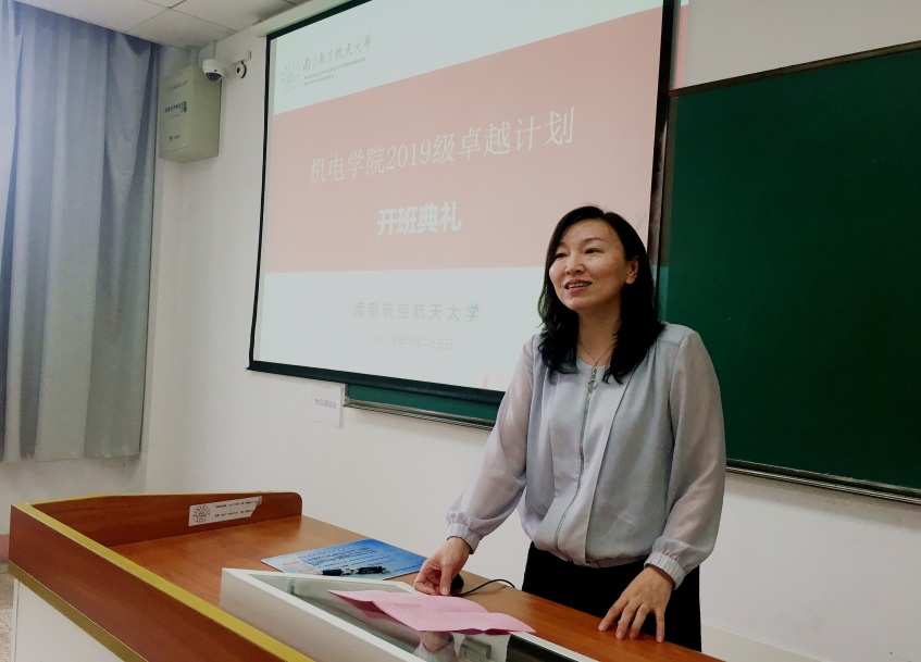 典礼开始,于敏院长代表学院致辞。她首先对通过严格选拔进入“卓越班”的60余名同学表示热烈欢迎,并回顾了学院“卓越班”自2013年设立以来在人才培养、科创比赛等方面取得的优异成绩。最后,于院长对同学们提出了几点希望和建议,希望同学们能够潜心学习、夯实基础,提高发现、分析以及解决问题的能力,脚踏实地、知行合一,树立远大理想,为我国从制造大国迈向制造强国贡献自己的力量。