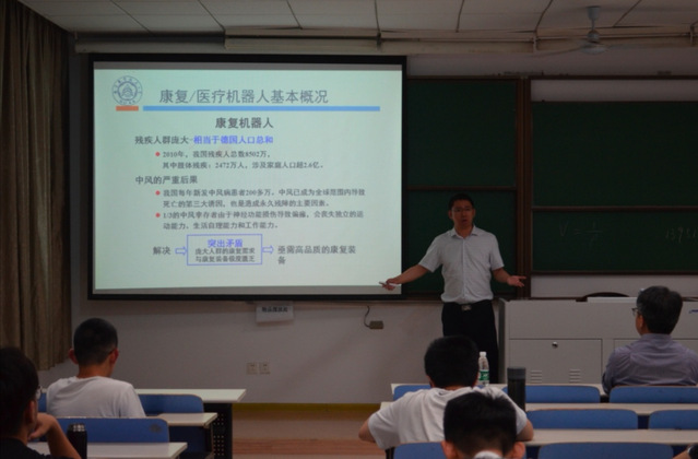首先,陈柏教授向大家展示了医疗机器人与康复机器人在国内外的应用状况以及研究现状,介绍了目前国内外最先进的医疗机器人,诸如达芬奇医疗机器人与介入手术导管机器人等在实际临床上的应用,为大家打开了对医疗机器人的认知领域,进而生动形象地引入了医疗机器人与康复机器人的概念。