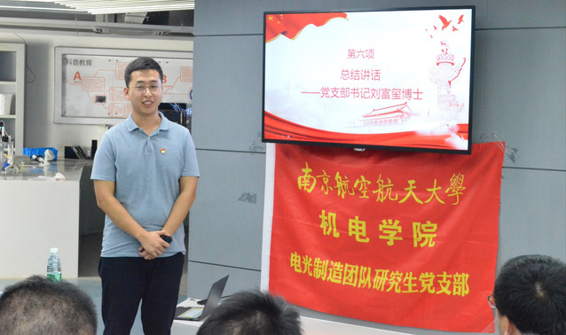 6月1日上午,电光制造团队研究生党支部开展“深刻理解和坚持党的领导,砥砺奋进航空报国伟大征程”主题党史学习教育,深入学习党的发展历史,汲取宝贵的精神财富,激发前进力量。电光先进制造团队邱明波副教授,校党史宣讲团李哲博士,党支部书记刘富玺博士,以及团队党员、团员共同参加,活动由党支部副书记徐原野主持。
