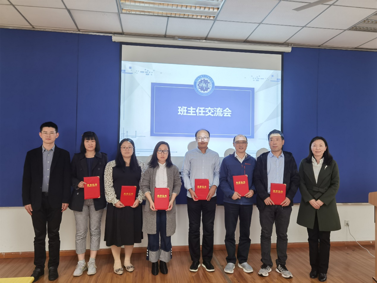 接着,于敏宣布了2021年优秀班主任名单,董羽为优秀班主任颁发了证书。然后上届优秀班主任冷晟、赵国龙及本届优秀班主任李宏凯、侯祥颖、张红、余厚云依次与大家分享了自己班主任工作管理经验。他们分别从不同的侧重点,根据自己班级情况,用一个个真实、鲜活的典型案例,就如何发挥班主任作用、关爱每一位学生、培养学生学习习惯、引导学生参加科创活动等方面做了经验介绍。会场掌声不断,在分享成功经验的同时,大家也进行了深刻的反思,并提出了班主任管理工作中存在的困惑,于敏和董羽针对大家提出的困惑依次进行了解答。
