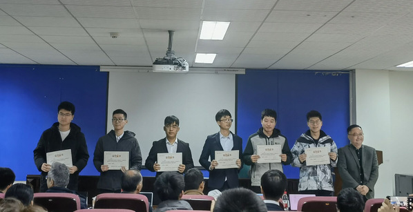 经过现场答辩的激烈角逐,由左清宇小组设计的“全自动草方格沙障铺设无人车”和由邢子霖小组设计的“仿白掌长臂猿智能机械臂机器人”获得一等奖,其余6件参赛作品获得二等奖。南京易威乐总经理程浩,安徽永成机电工程师徐京城分别为一等奖和二等奖获奖队伍同学颁发证书。8件校赛获奖作品全部推荐参加明年春季的省赛。