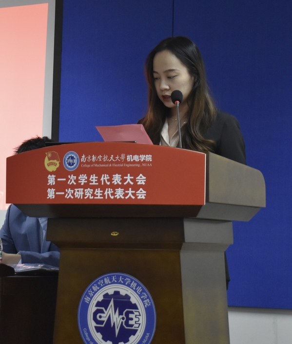 正式会议上,秦钰博和王曦分别代表上一届学院学生会、研究生会向代表们汇报一年来学生会与研究生会所开展的各项工作。
