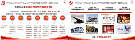 为展示双方高校的特色、增进同学们对对方院校、专业的理解,党日活动邀请了全国高校“百个研究生样板党支部”我校航空学院直升机研究生党支部书记周旭进行了航空航天馆的讲解,对我国航空航天器的发展历程和南航在我国航空航天器发展中所贡献的力量进行了精彩的介绍;中国农业大学也从求学、育人、科研及社会工作通过视频讲述了中国农大蔡旭院士的小麦人生,以期怀先贤之高标,传先生之精神,勖后学之奋进。