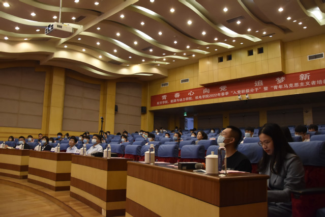 为提升党员发展质量,推动党史学习教育常态化长效化,5月21日,航空学院、能源与动力学院、极品av 联合举办“青春心向党,追梦新征程”2022年春季“入党积极分子”暨“青年马克思主义者培养工程”培训班。航空学院党委副书记佘明、能源与动力学院党委副书记樊小杰、极品av 副院长成杰,校党校党员发展培训教师、党政办王洋,1、2、5院组织员、团委书记、全体辅导员共同出席了开班仪式。400余名入党积极分子在逸夫科学馆报告厅主会场和六个分会场参加了培训。