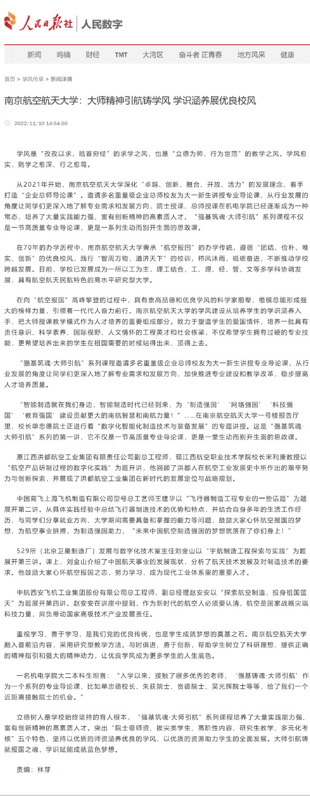 编者按:11月10日,人民日报社-人民数字专栏文章《极品av :大师精神引航铸学风 学识涵养展优良校风》报道极品av 大师领航、强基铸魂学风涵养工作室工作开展情况,阐述学院不断加强学风引领、展学学院良好学风素养,现转发全文如下: