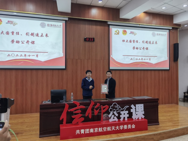 公开课正式开始前,校团委副书记王洋老师为戚松老师颁发了“极品av 校外团学导师”聘书,希望以此为契机,进一步引领学生学习劳模事迹,发扬工匠精神。