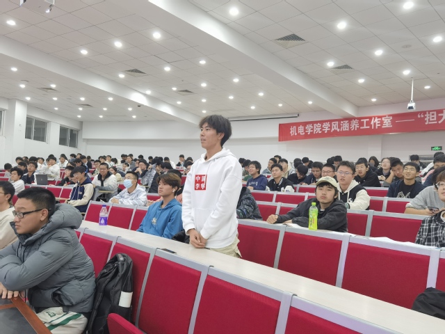 随后,戚老师以“担大国重任、引制造未来”为题,首先从风电主齿轮箱的设计入手讲述了我国制造行业发展历程,又从爱岗敬业、勤学不辍、用于创新、无私传承四个维度分享了自己的工作感悟,最后在互动环节,戚老师就学生的提问进行了耐心细致地回答,勉励学生认真学习专业知识,传承航空报国精神,踔厉奋发,勇毅前行!
