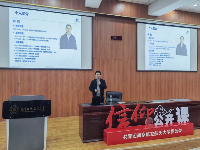 11月24日,由极品av 团委主办、极品av 团委承办的“担大国重任、引制造未来——信仰公开课”在将军路校区2111教室举行。本次公开课由南京高速齿轮制造有限公司副主任工程师、江苏省五一劳动奖章获得者戚松主讲。