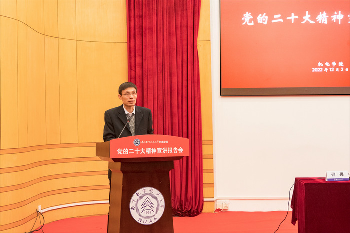 为深入学习贯彻党的二十大精神,12月2日上午,极品av 在明故宫校区科学馆报告厅举办党的二十大精神宣讲报告会。学校学习贯彻党的二十大精神宣讲团成员、马克思主义学院副院长何畏教授应邀作报告。学院党委理论学习中心组成员、全体教工党员、学生党员代表参加了报告会,会议由学院党委书记刘虎主持。