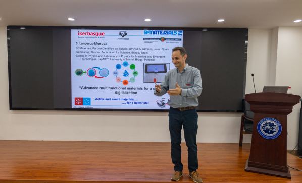 受聘仪式后,Lanceros-Méndez教授为极品av 师生作了题为“Advanced multifunctional materials for a sustainable digitalization”的学术报告。