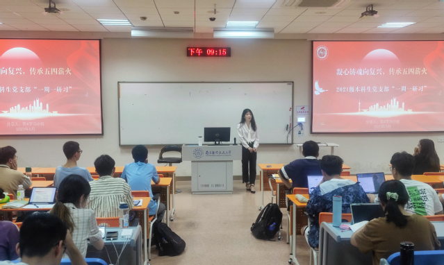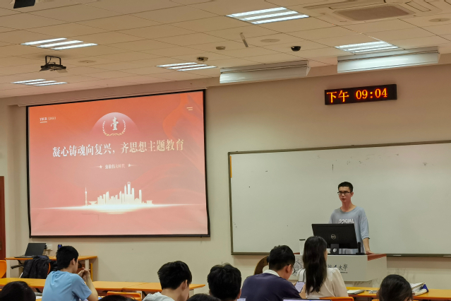 首先,支部党员潘恒领学习近平总书记在学习贯彻习近平新时代中国特色社会主义思想主题教育工作会议上的讲话,介绍了开展主题教育的重大意义、总要求、目标任务和重点措施。随后,支部书记聂敏敏带领同学们回顾了“爱国、进步、民主、科学”的伟大五四精神,并结合志愿服务、工作实践等分享了自己的思考和感悟,希望同学们自觉用习近平新时代中国特色社会主义思想来改造主观世界,提高理论修养,增强能力本领,努力践行新时代青年的使命担当。