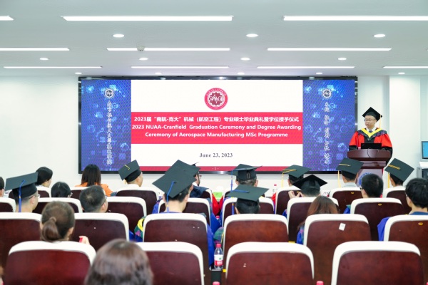 6月23日上午,2023届“极品av -英国克兰菲尔德大学(以下简称南航-克大)”机械(航空工程)专业硕士毕业典礼暨学位授予仪式顺利举行。英国克大可持续制造系统中心主任Konstantinos Salonitis,航空制造项目负责人Konstantinos Georgarakis,我校国合处处长张卓、副处长沈敏,研究生院副院长郑祥明,极品av 党委书记刘虎、院长傅玉灿、副院长郭宇,项目各届班主任与相关工作人员,2023届毕业生和家长出席了毕业典礼。典礼由郭宇主持。