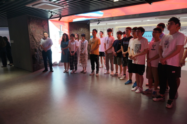 师生们在讲解员的带领下入馆参观,馆内“金陵之剑”由三个板块组成,运用声光电等现代科技手段,向参观人员生动展示了我党隐蔽战线斗争的光辉历程,强调了加强国家安全工作的重要性和必要性。通过观看内部影视专题片,使师生进一步深刻认识到当前我国家安全工作面临的严峻形势和艰巨任务。最后,讲解员通过交流互动、案例分析等方式介绍著名间谍人物、间谍案例和间谍装备,让支部成员对充满神秘色彩的间谍生活有了更加直观的了解。