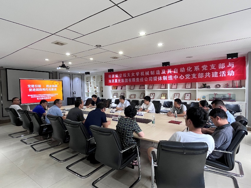 机械制造及其自动化系党支部与南京晨光集团有限责任公司箭体制造中心党支部联合开展“党建引领·校企协同促进国防现代化建设”支部共建活动。机械制造及其自动化系教师党支部与南京晨光箭体制造中心党支部党员参加。活动由机械制造及其自动化系党支部书记李寒松主持。