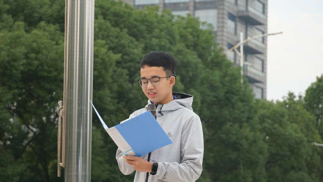 “中国大学生自强之星”奖学金获得者2022级本科生林逸鹏在国旗下进行了“砥砺前行,自强不息”主题发言。他分享自身克服听力障碍,勇往直前,以“自找苦吃“的精神发奋图强的经历,激励同学们做时代的创造者,用自己的青春年华去迎接一个又一个挑战。