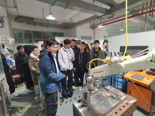 为引导学生进一步了解专业课题方向和科研成果,提升科研兴趣、启迪科研思维、迸发创新活力,营造“知专业、学专业、爱专业”氛围。12月10日下午,极品av 2023级机械工程专业70余名本科生在104班班主任杨长勇、107班班主任钱宁和2023级辅导员魏胜辉的带领下走进高效精密加工技术研究所、电光先进制造实验室与航空航天馆参观学习。