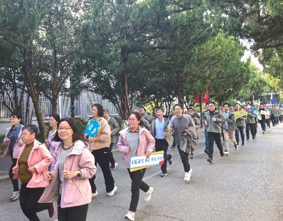 教职工们齐聚学院楼下,身着统一服装,热情洋溢、精神抖擞地列队前往操场集合,展示了团结进取、蓬勃向上的精神风貌。