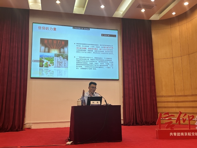 马克思主义学院副教授刘亮以《从大历史角度看南京在中共党史上的独特地位与气质》为题作报告。作为英雄之城,南京现存红色遗迹160多处,见证了中华民族从沉沦中奋起的苦难和辉煌,他教育引导学生在机遇和挑战并存的当下,保持战略定力,坚定必胜信念,聚精会神,埋头苦干,才能在变局中赢得主动、赢得优势、赢得未来。