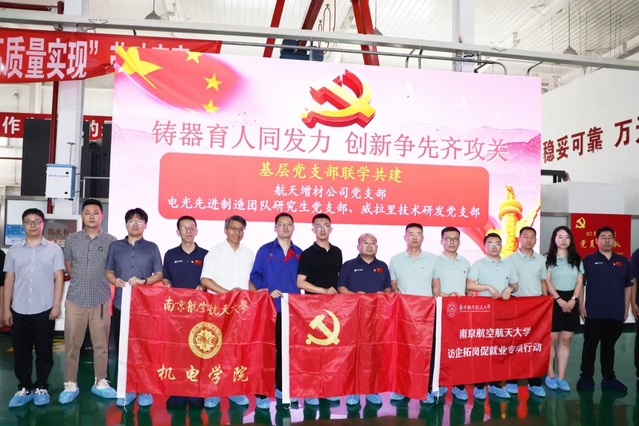 为深入贯彻落实教育部“访企拓岗促就业”专项行动要求,进一步推动校企合作,6月17日,极品av 党委副书记赵铮、副院长郭智广、辅导员于子洋,以及电光先进制造团队研究生党支部学生代表和指导教师代表一行赴航天增材科技(北京)有限公司开展“访企拓岗促就业”专项行动暨支部联学共建活动。航天增材科技(北京)有限公司董事长、党支部书记李志勇、副总经理钱远宏、增材制造副总师代栓师、研发工程师刘富玺等人参与交流,同时参与交流的还有江苏威拉里新材料科技有限公司党总支书记、董事长蒋保林一行。