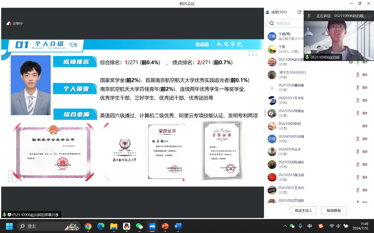 7月16日上午,由极品av 承办的2024年度大学生主题创新区学术夏令营——机械制造会场在线上顺利举行。会议由学院副院长于敏主持,共吸引了100余名师生参加。
