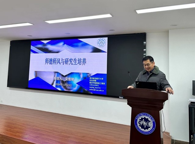 安老师讲座题为“师德师风与研究生培养”,师爱为魂,学高为师,身正为范,提出师德的内在要求,育人德为先,身教胜言传,教学质量的提高,很大程度上取决于教师影响力的大小,而教师的影响力主要由品格因素、才能因素、知识因素和情感因素组成,教师的示范作用极为重要;关于师风,引出古人提出的四个标准,即尊严、威信、克己和传道。安老师结合亲身经验,提到高校教师要从自身出发,加强师德师风培养的责任意识,在工作中思想进步、关爱学生、教书育人、严谨治学、坚守真理、开拓创新、传承文化。
