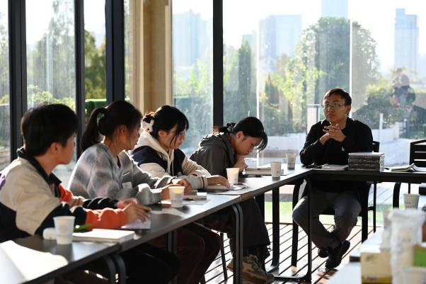 分享环节中,师生围绕议题各抒己见,结合自身成长阅历与阅读感悟展开热烈交流。有同学提到,《活着》不仅是一部个人苦难史,更是 20 世纪上半叶普通百姓的“时代纪录片”,书中对生存困境的真实刻画,让自己深刻体会到当下美好生活的来之不易,也明白“每一代人都需勇敢面对生活之痛”;也有同学以霜降节气的寓意作比,认为福贵的人生就像“被霜打过的土地”,看似荒芜却暗藏无法被摧毁的生命韧性,而这种“认清生活真相后依然热爱生活”的态度,正是“向死而生”勇气的最好诠释。王曦在交流中也结合自身经历,鼓励同学们在学业与生活中遇到困境时,借鉴福贵“为活着本身而活着”的信念,不被外在得失裹挟,坚守内心的力量。
