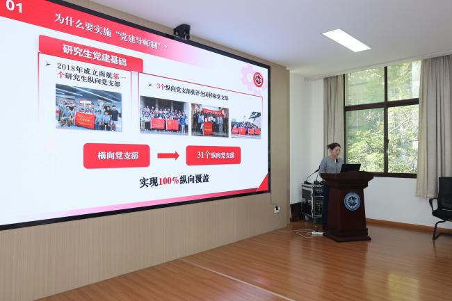 电化学制造团队研究生第一党支部书记周政瑞同学,则从党建引领、发展推动、师生共建、资源整合等角度,汇报了支部在落实党建导师制过程中取得的系列成果。