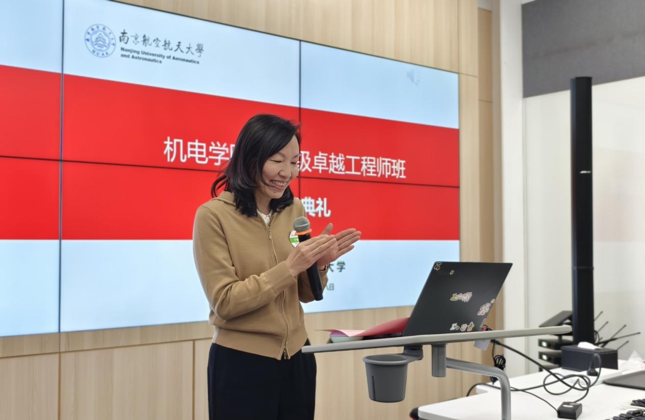 于敏首先为开班典礼致辞。她强调了卓越工程师培养在服务国家战略中的重要意义,希望同学们树立主动学习和终身学习理念,密切关注智能制造、航空航天装备升级、绿色制造等技术前沿领域,充分利用项目实习等实践机会,提升问题研判与解决能力,将个人成长融入国家航空航天事业发展,努力成为担当民族复兴大任的优秀工程人才。