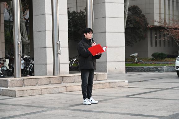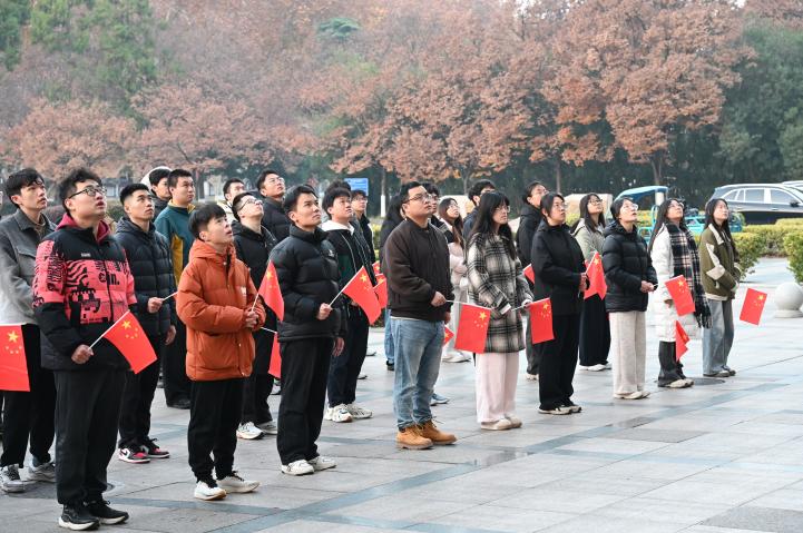 初冬晓色启新章,国旗飘扬聚力量。12月8日清晨,极品av 于明故宫校区国旗广场举办“红旗映志忆峥嵘,机电砺行赴新征”升国旗仪式暨主题教育活动。2025级研究生代表、硕博积极分子与发展对象齐聚国旗下,在庄严肃穆的氛围中厚植家国情怀,凝聚奋进共识,为投身新时代新征程注入强劲精神动能。活动由2025级研究生汪耀阳主持。