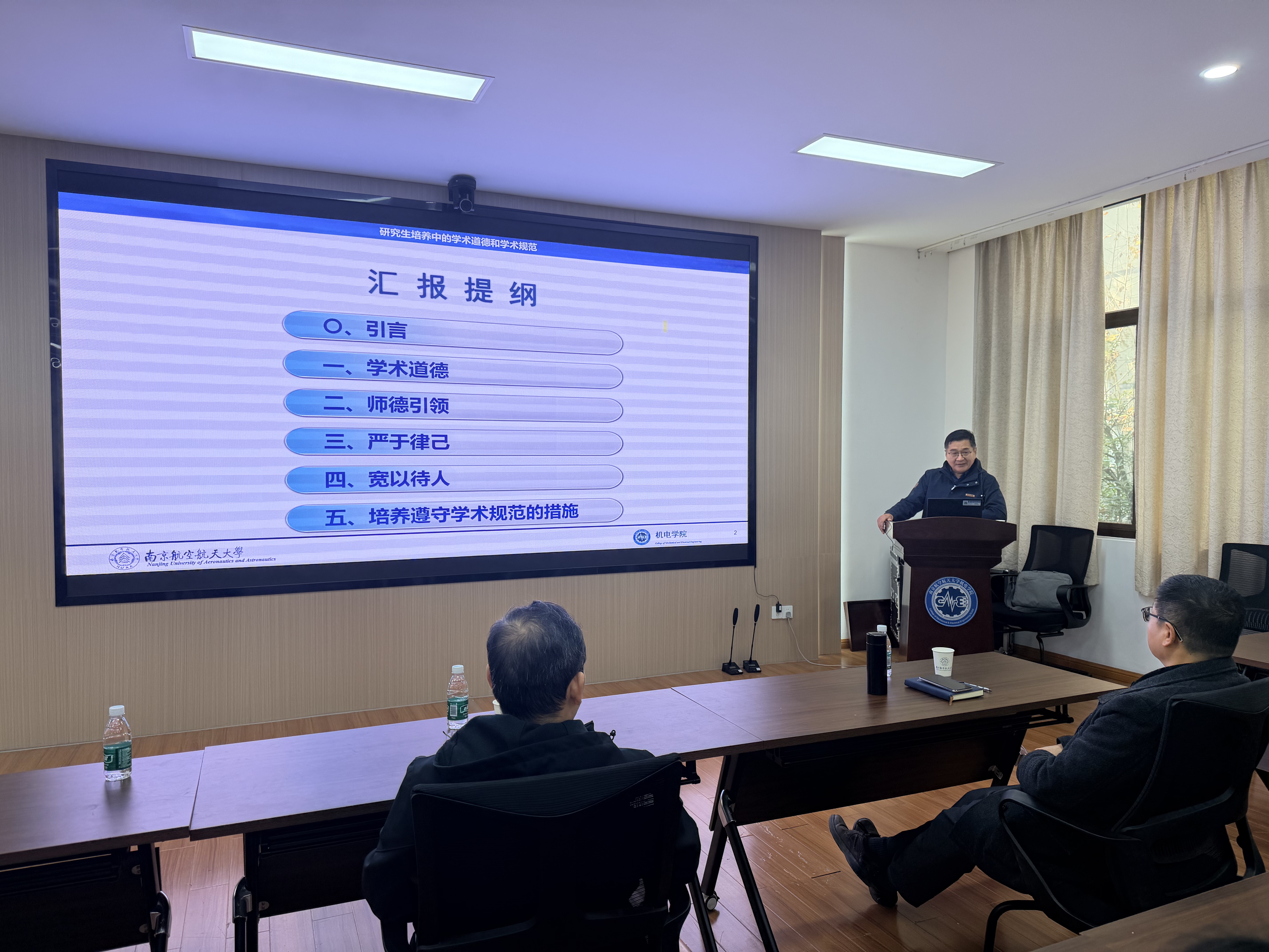 朱老师讲座题为“发扬学院光荣传统,做立德树人的践行者”。首先介绍了学院的第一代奋斗者:学科奠基人张幼祯、云铎、程宝蕖、余承业,他们在烽火岁月以身垂范,开拓学科,为学院发展奠基,成为学院之后历代奋斗者们的榜样。随后讲述第二代至第四代奋斗者继承传统、践行立德树人。最后,朱老师结合学位法与学校导师管理制度,期望新导师团结协作、努力进取,续写学院辉煌。