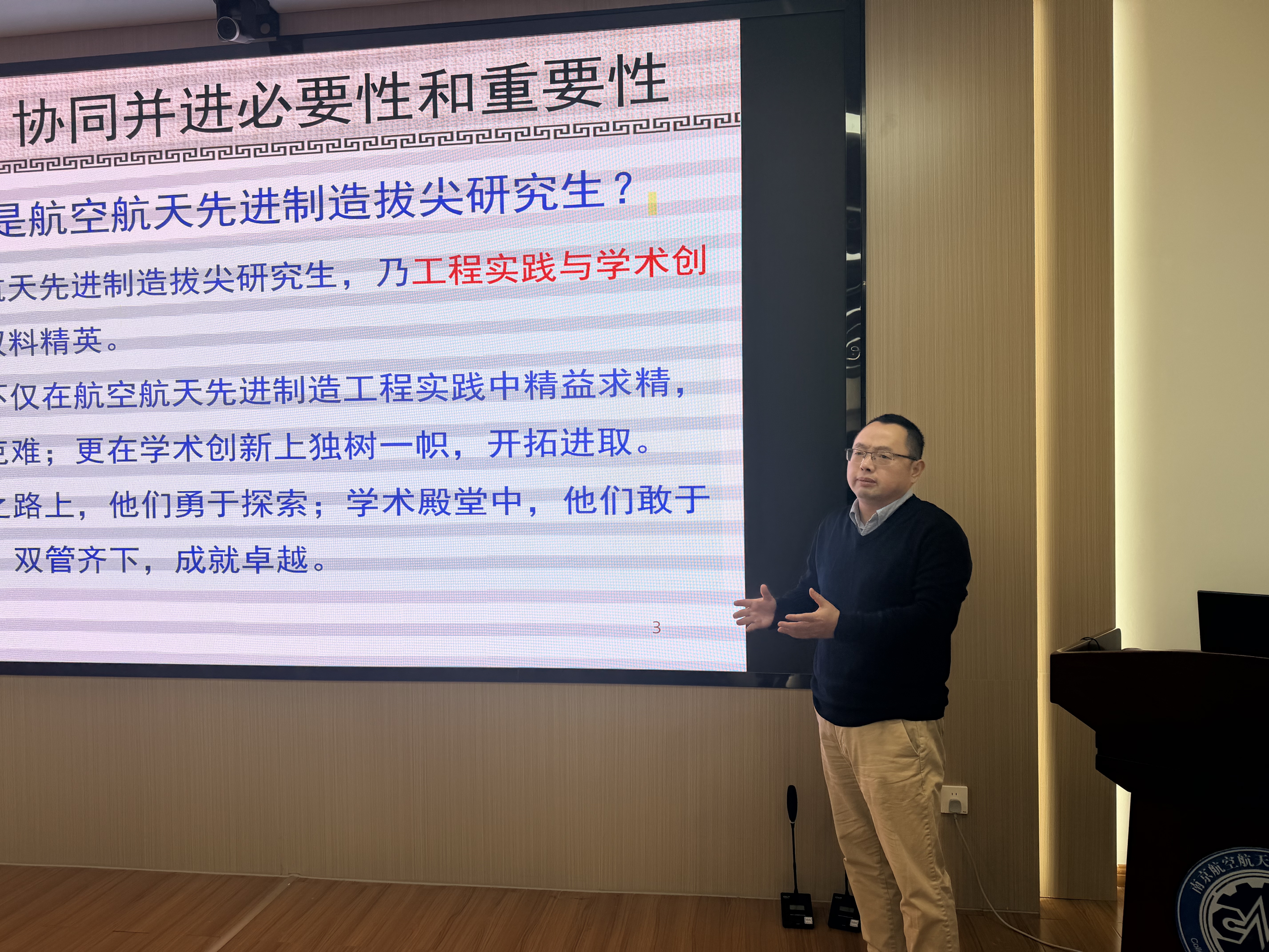 丁老师讲座“工程能力与学术创新协同并进的航空航天先进制造拔尖研究生培养模式与实践——从导师视角”,从协同并进必要性和重要性,传统培养模式的痛点,论文写作能力是重要抓手,研究生论文写作能力培养,学位论文质量保障与成效五个方面展开。丁老师结合自身培养经验,建议导师们全程关注学生,发掘长项,提升研究生综合能力,营造积极团队风气,有助于培养复合型人才,满足国家航空航天需求,推动科技进步与创新。