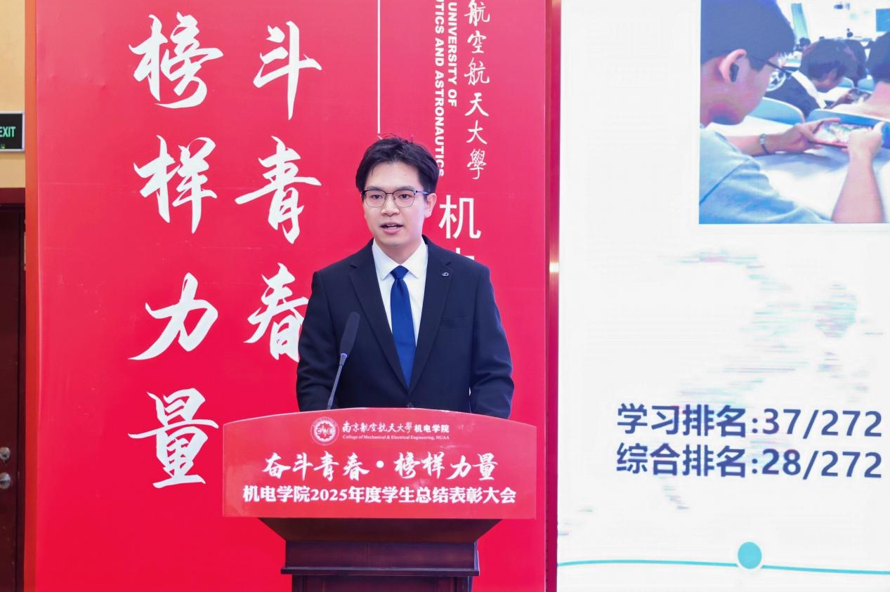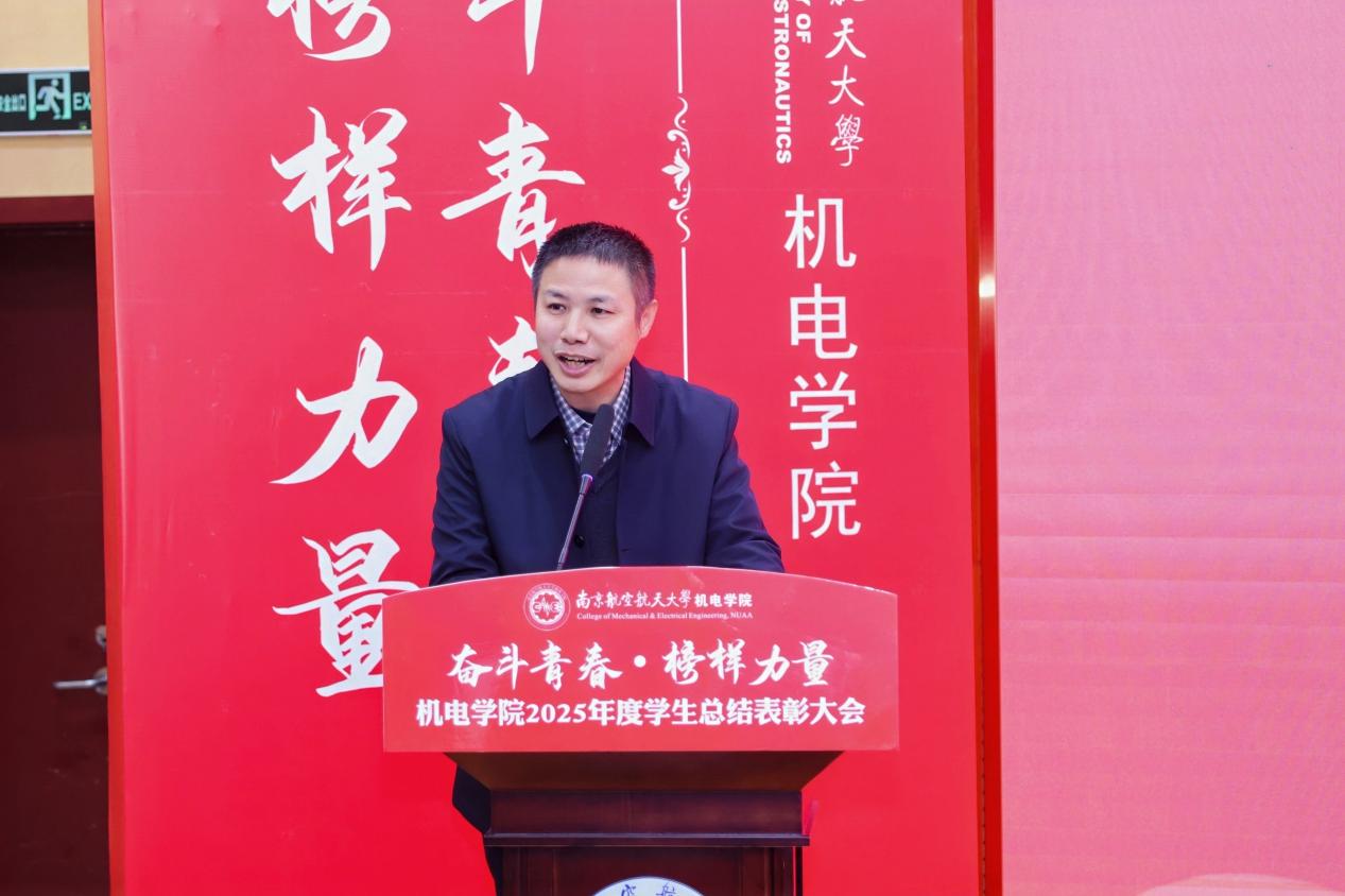 大会最后,极品av 党委书记刘虎作总结讲话。他代表学院向获奖集体与个人表示祝贺,向设奖单位及校友表示感谢。刘虎书记指出,本次大会既是一次榜样事迹分享会,也是一堂生动的思政公开课。他勉励全体机电学子要铸牢信仰之基,将个人理想融入国家航空航天事业大局;要锤炼过硬本领,勇于攀登科技高峰,助推高水平科技自立自强;要永葆奋斗之姿,勇担时代重任,在推进强国建设、民族复兴的伟大实践中书写无愧于时代的青春篇章。