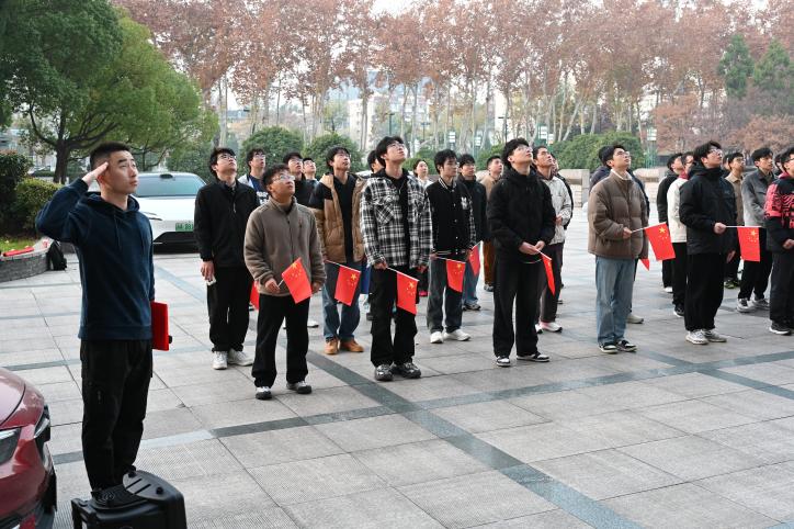 初冬晓色启新章,国旗飘扬聚力量。12月8日清晨,极品av 于明故宫校区国旗广场举办“红旗映志忆峥嵘,机电砺行赴新征”升国旗仪式暨主题教育活动。2025级研究生代表、硕博积极分子与发展对象齐聚国旗下,在庄严肃穆的氛围中厚植家国情怀,凝聚奋进共识,为投身新时代新征程注入强劲精神动能。活动由2025级研究生汪耀阳主持。