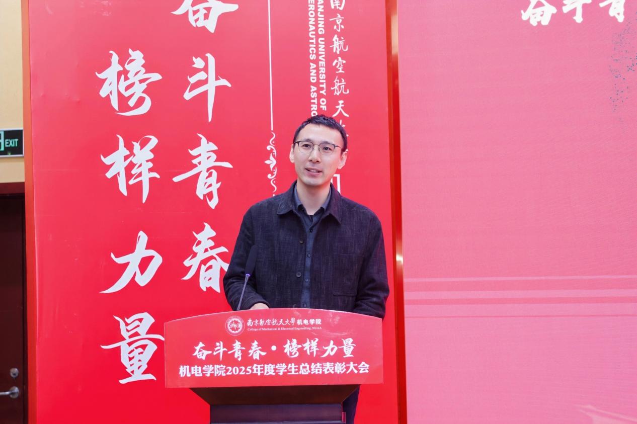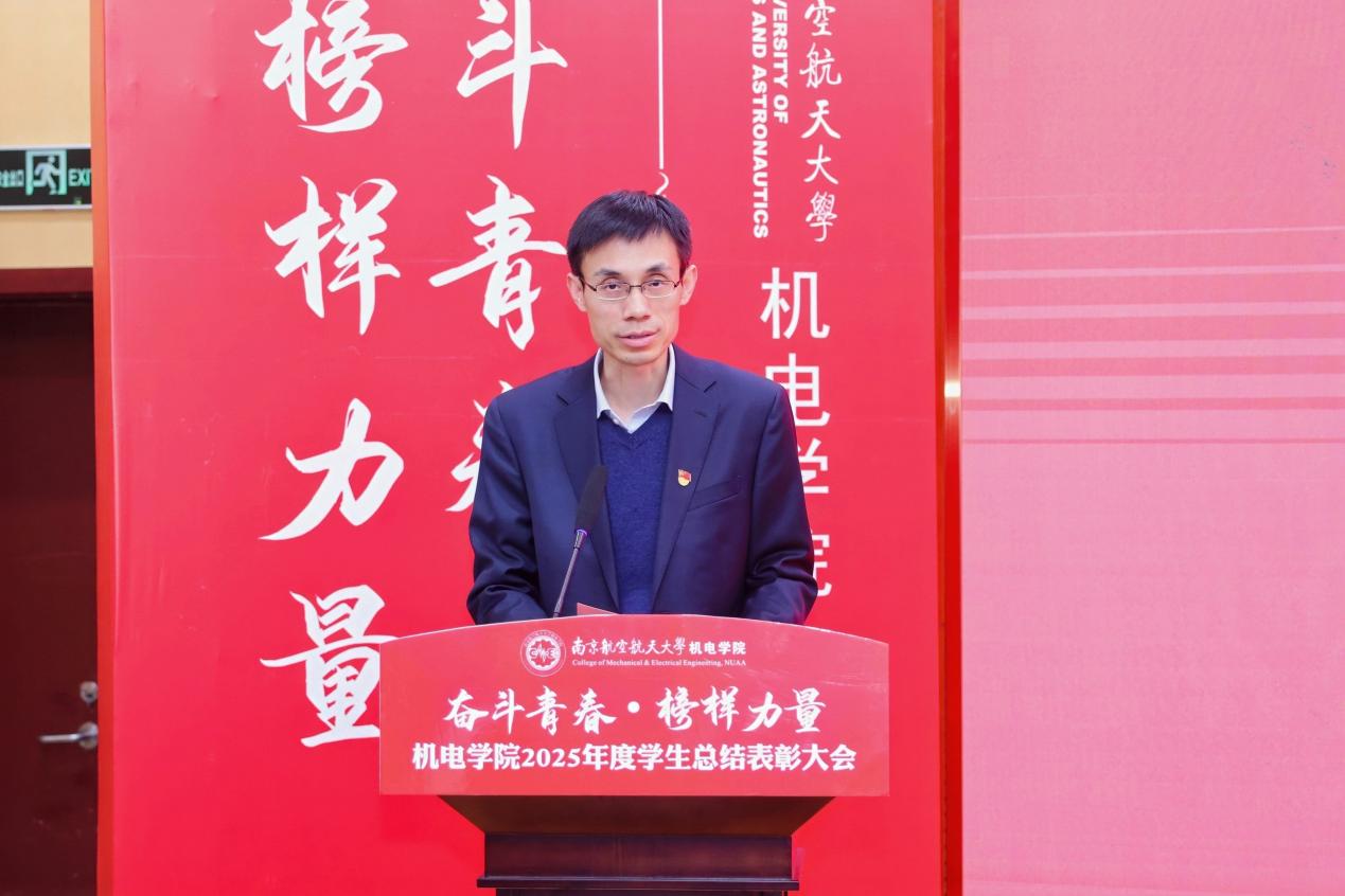 大会最后,极品av 党委书记刘虎作总结讲话。他代表学院向获奖集体与个人表示祝贺,向设奖单位及校友表示感谢。刘虎书记指出,本次大会既是一次榜样事迹分享会,也是一堂生动的思政公开课。他勉励全体机电学子要铸牢信仰之基,将个人理想融入国家航空航天事业大局;要锤炼过硬本领,勇于攀登科技高峰,助推高水平科技自立自强;要永葆奋斗之姿,勇担时代重任,在推进强国建设、民族复兴的伟大实践中书写无愧于时代的青春篇章。